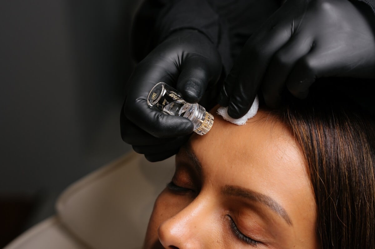 - This facial uses a 24 karat microchanneling device that is thin like a piece of hair that uses a stamping technique to infuse the custom blend into the face.