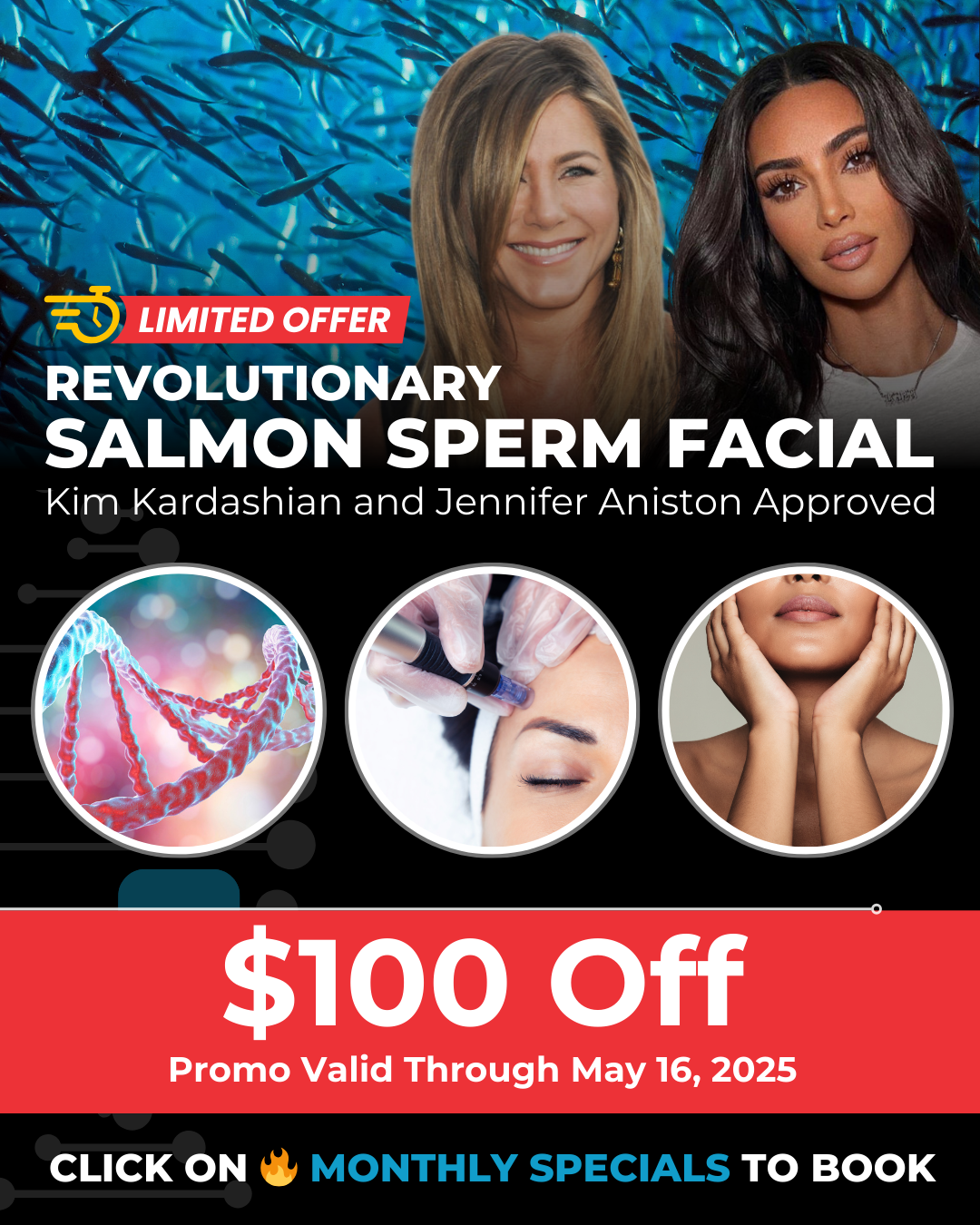 The Salmon Sperm Facial is a unique blend of Vitamins, Amino acids, Minerals and Polydeoxyribonucleotides (PDRN) for skin rejuvenation and revitalization.