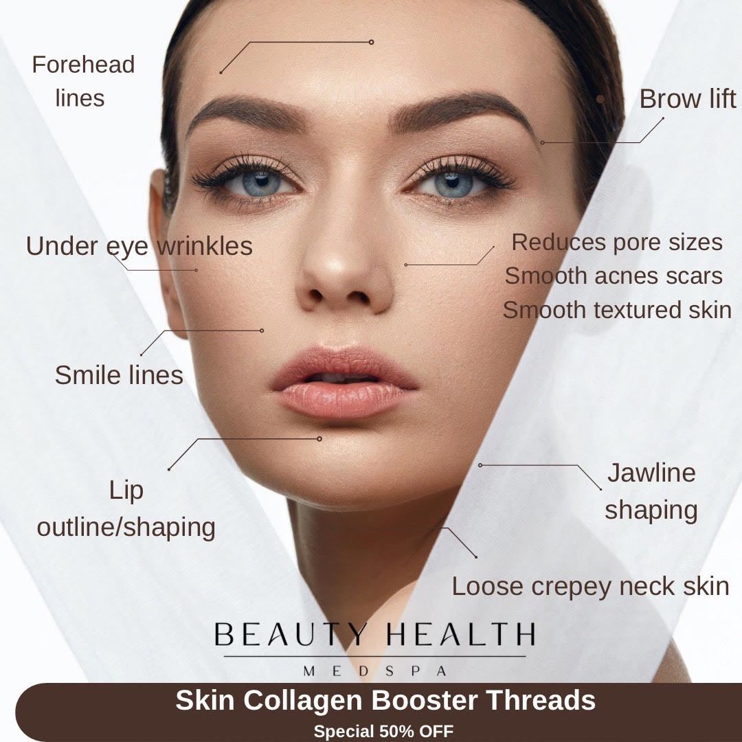 PDO Skin Collagen Booster Threads, also known as PDO Smooth Threads, are inserted right under the skin to provide support and strength to the skin. It helps to reduce fine lines and wrinkles; it also works great for acne scars and pores! These threads stimulate neocollagenesis for long term collagen production. PDO Smooth Threads are dissolvable sutures that are extremely thin (the size of a strand of hair). When crosshatched under the skin, the improvement in skin texture, collagen, firmness and strength is noticeable in four weeks. All of our threads used at Beauty Health are FDA cleared.